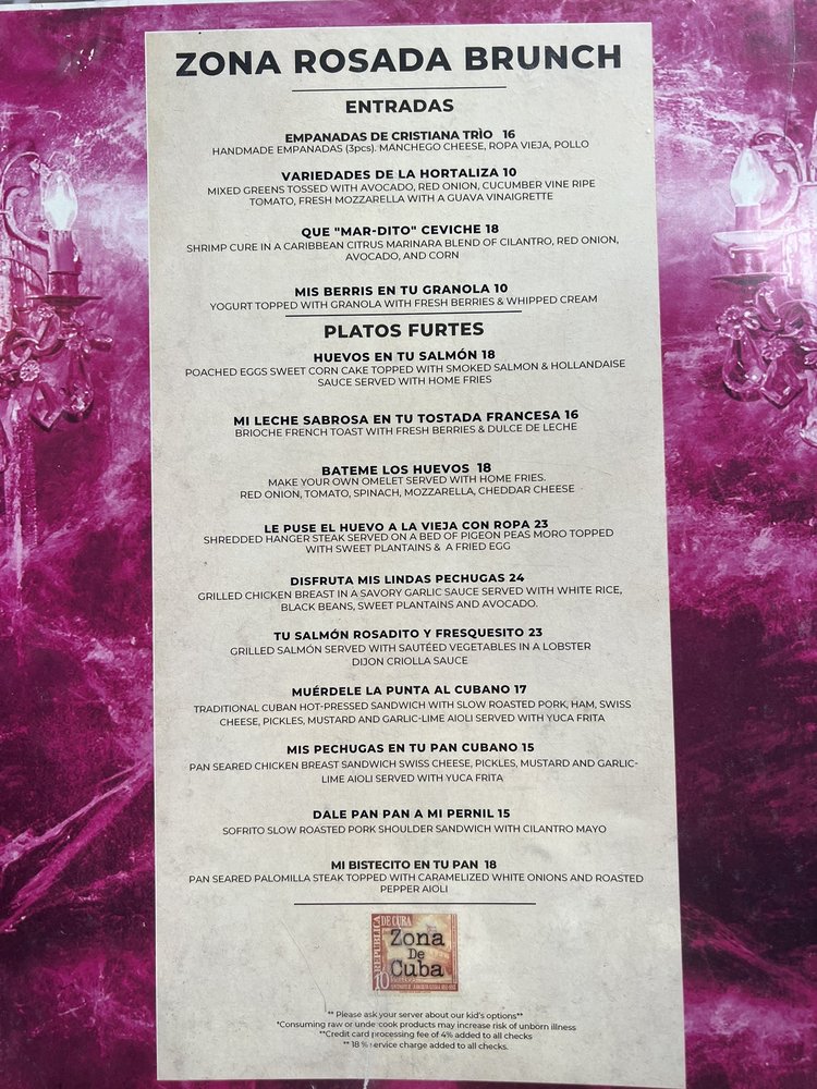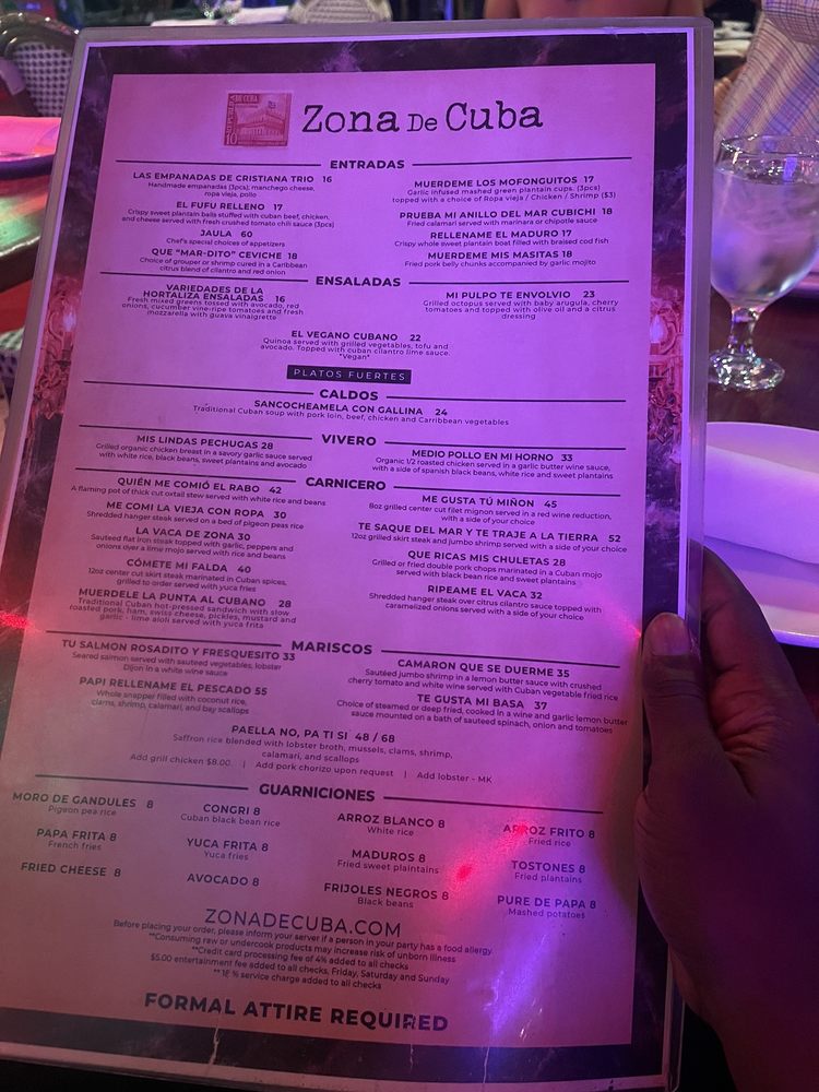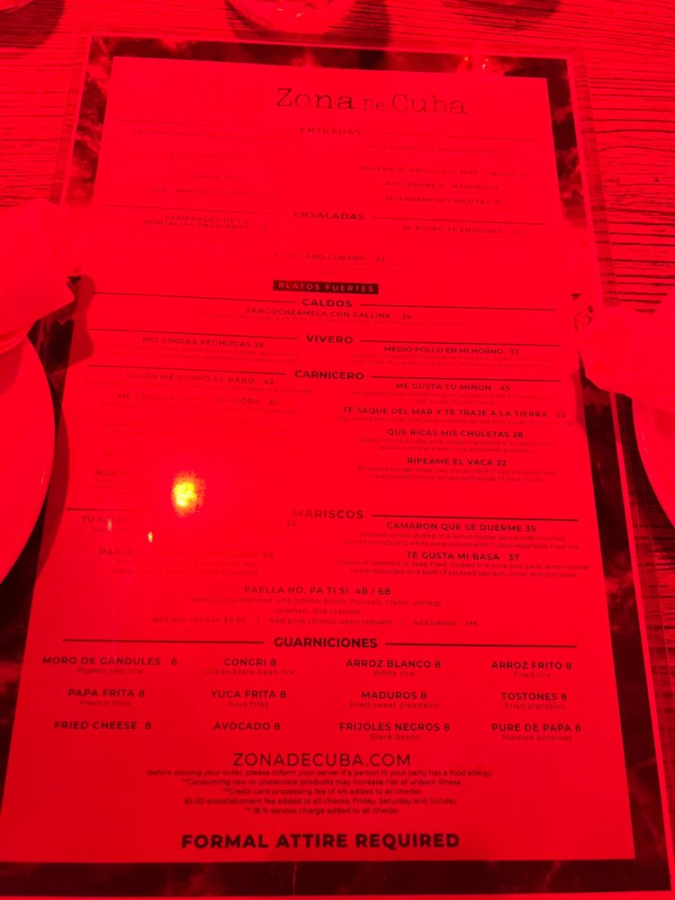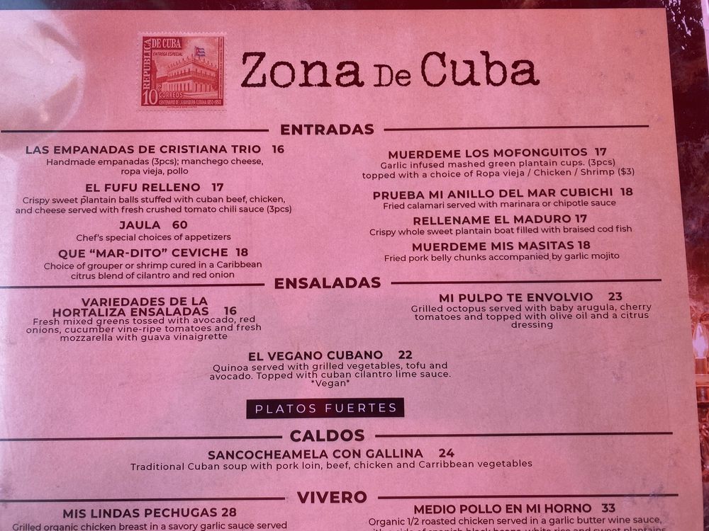 Zona De Cuba, located in Bronx, NY, offers a unique dining experience with a diverse menu featuring vegan options, tasteful entrees, and delicious desserts. With classy decor and attentive waiter service, this restaurant is perfect for groups and special occasions. The menu includes mouth-watering dishes like Empanadas De Cristiana Trio, Muerdeme Mis Masitas, and El Cubano Vegano Salad. Customers rave about the fresh drinks, live music, and rooftop ambiance. The restaurant's rooftop space provides stunning views of the sunset, making it a hidden gem in the Bronx. While some customers note the need for menu updates, the overall dining experience at Zona De Cuba is one of warmth, elegance, and fantastic service. Make sure to try the Grilled Chorizo and the Chef's Choice Platters for a truly memorable meal.